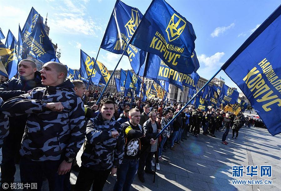 當?shù)貢r間2019年3月9日,烏克蘭基輔,烏克蘭民族主義政黨的激進分子集會要求調(diào)查烏克蘭武裝部隊官員的腐敗問題,與警方發(fā)生激烈沖突。(圖片來源:視覺中國)