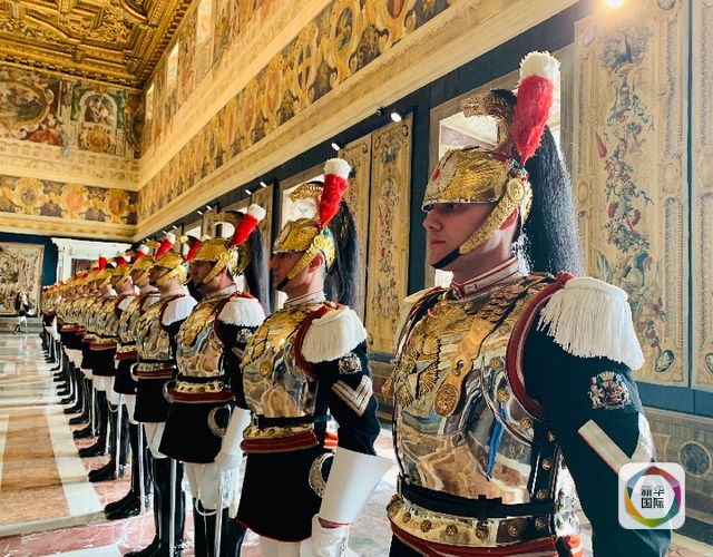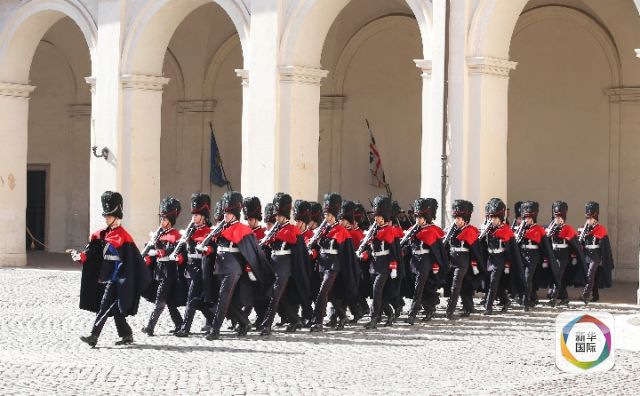 3月23日,意大利總統(tǒng)馬塔雷拉在總統(tǒng)府為國家主席習(xí)近平舉行隆重歡送儀式。圖為意大利禮兵列隊準(zhǔn)備歡送習(xí)近平。(新華社記者高潔攝)