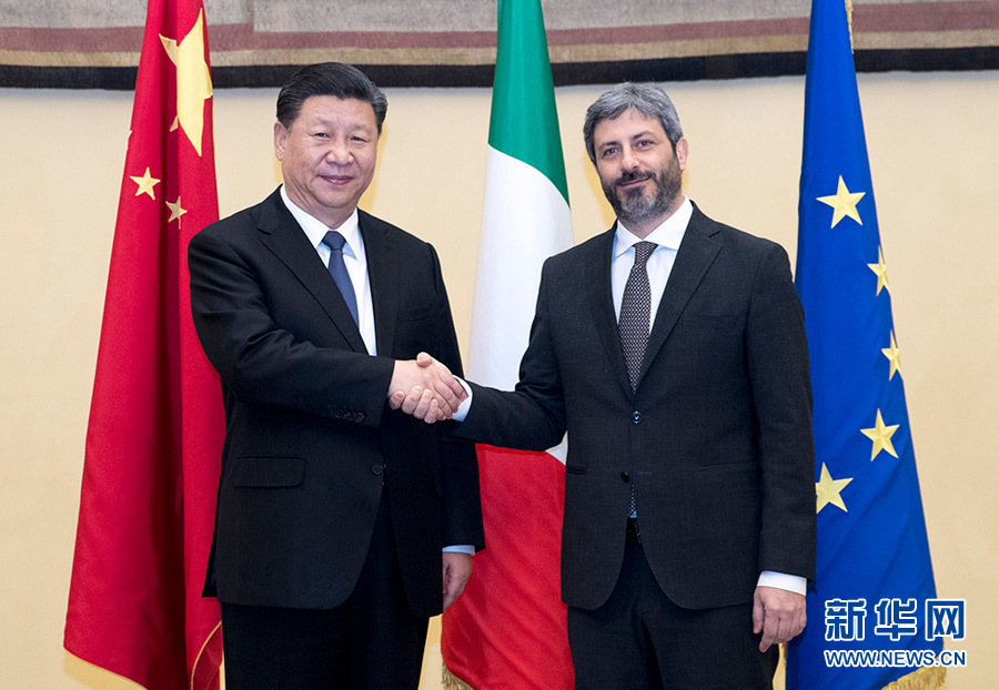 3月22日,國家主席習(xí)近平在羅馬會見意大利眾議長菲科。(新華社記者王曄攝)