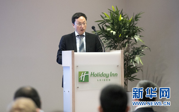 中國(guó)駐荷蘭大使館經(jīng)商參贊張國(guó)勝在近日舉行的“2019年中荷經(jīng)貿(mào)論壇”上致辭。陳嘉良 攝