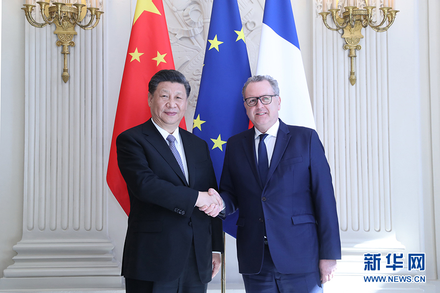 3月26日,國(guó)家主席習(xí)近平在巴黎會(huì)見法國(guó)國(guó)民議會(huì)議長(zhǎng)費(fèi)朗。 新華社記者 鞠鵬 攝