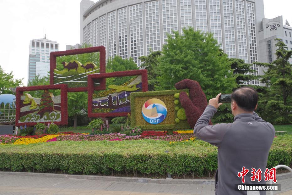 4月18日,北京朝陽門的“一帶一路”主題花壇吸引市民拍照。第二屆“一帶一路”國際合作高峰論壇即將在北京舉行,北京市內(nèi)布置了多個主題花壇迎接盛會。中新社記者 賈天勇 攝