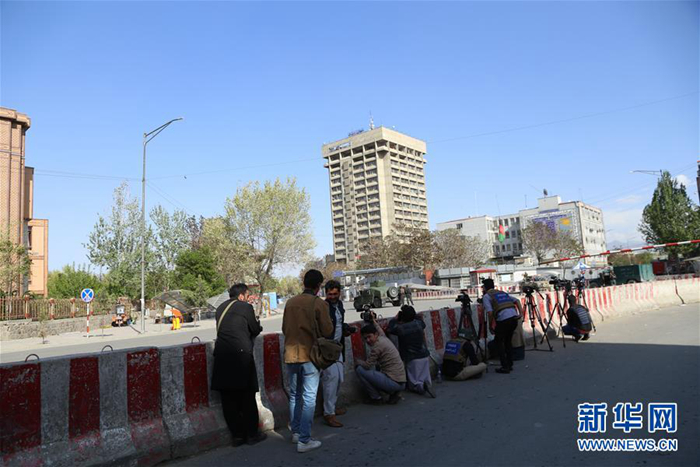 4月20日,在阿富汗首都喀布爾,記者聚集在襲擊現(xiàn)場。新華社發(fā)(拉赫馬特·阿里扎達 攝)
