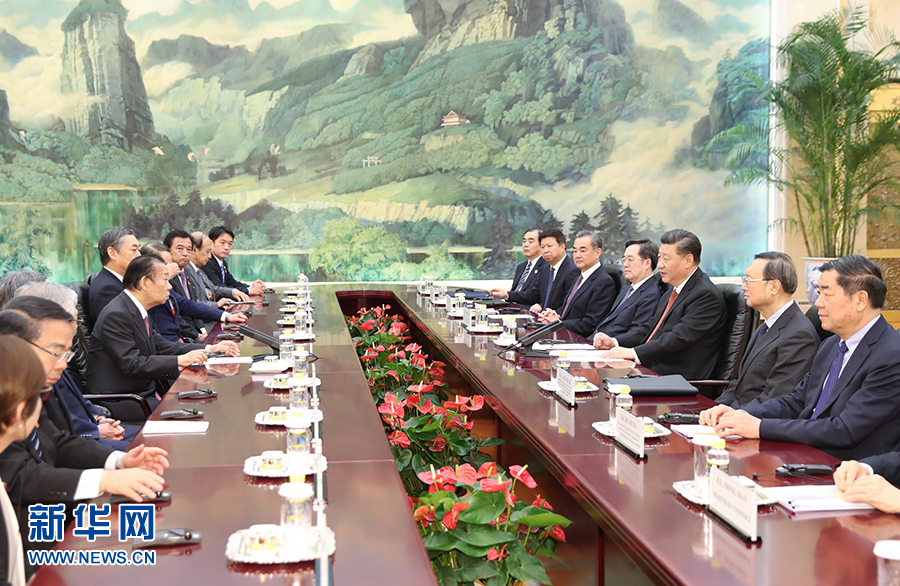 習(xí)近平指出,當(dāng)前,中日關(guān)系重回正常軌道,呈現(xiàn)積極發(fā)展勢頭。雙方要恪守中日四個政治文件確立的各項原則,堅持和平友好大方向,持續(xù)深化互利合作,推動兩國關(guān)系健康穩(wěn)定發(fā)展。要把中日“互不構(gòu)成威脅”、“互為合作伙伴,相互支持對方和平發(fā)展”的政治共識落到實處,把兩國各領(lǐng)域交流合作推向新水平。雙方要深挖合作潛力。中方歡迎日方繼續(xù)深入?yún)⑴c中國改革開放,希望日方更加積極參與共建“一帶一路”。雙方要加強(qiáng)溝通和協(xié)調(diào),共同維護(hù)多邊主義和自由貿(mào)易,共同推動建設(shè)開放型世界經(jīng)濟(jì)。中方支持日方辦好二十國集團(tuán)領(lǐng)導(dǎo)人大阪峰會。今年是中日青少年交流促進(jìn)年,雙方要在兩國民間特別是青少年當(dāng)中廣泛播撒友好種子,推進(jìn)民心相通。