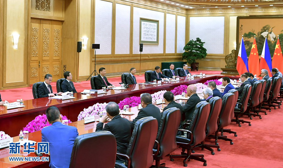 習(xí)近平指出,過(guò)去3年,中菲關(guān)系完成轉(zhuǎn)圜、鞏固、提升“三部曲”,步入新的發(fā)展階段。實(shí)踐證明,中菲堅(jiān)持睦鄰友好順應(yīng)歷史潮流,符合人民期待,是唯一正確選擇。我每次同你交談都推心置腹,坦誠(chéng)相見(jiàn),為的是我們兩國(guó)和兩國(guó)人民的福祉。我愿同總統(tǒng)先生一道,繼續(xù)從戰(zhàn)略高度和長(zhǎng)遠(yuǎn)角度把握好兩國(guó)關(guān)系正確航向。雙方要堅(jiān)持睦鄰友好的大方向,共創(chuàng)攜手發(fā)展的大格局,發(fā)揮妥處分歧的大智慧,把握世界發(fā)展的大潮流。共建“一帶一路”倡議同總統(tǒng)先生提出的“大建特建”規(guī)劃高度契合,雙方合作卓有成效。中方愿同菲方深化發(fā)展戰(zhàn)略對(duì)接,在共建“一帶一路”框架內(nèi)打造合作亮點(diǎn),深化中菲兩國(guó)以及地區(qū)各國(guó)聯(lián)通和發(fā)展。雙方要重信守諾,發(fā)揚(yáng)伙伴精神,保持南海和平穩(wěn)定,加強(qiáng)海上合作。中方將繼續(xù)在禁毒、反恐等問(wèn)題上全力支持菲律賓人民的正義事業(yè)。