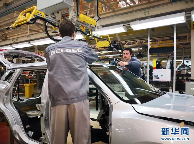 位于白俄羅斯的吉利全散件汽車制造廠拍攝的總裝車間。新華社記者 張若玄 攝