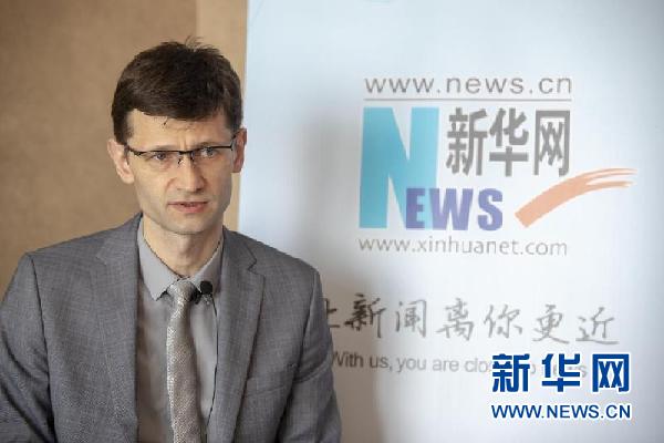 4月26日,白俄羅斯中國(guó)問(wèn)題專家蘇加克接受新華網(wǎng)采訪。新華網(wǎng)發(fā) 郭小天 攝