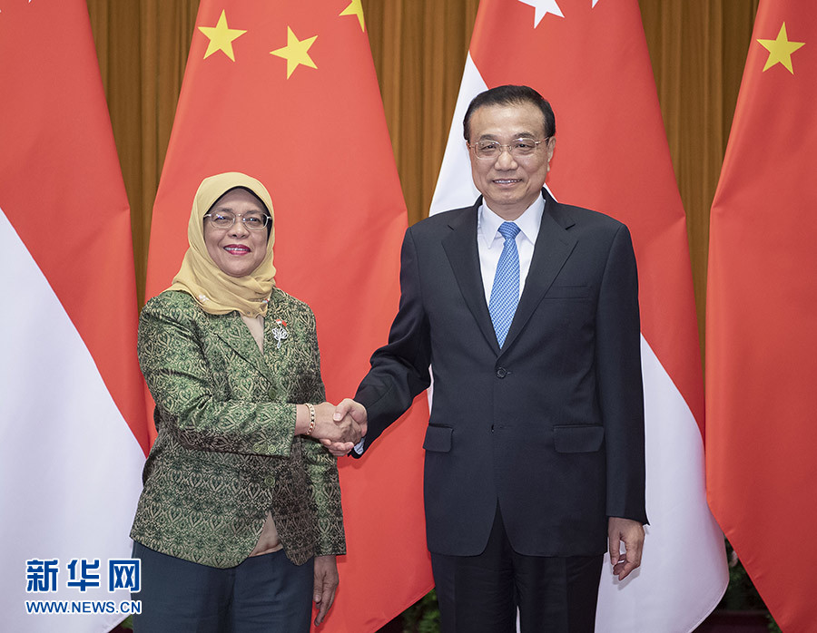 李克強(qiáng)表示,中國(guó)和新加坡隔海相望,兩國(guó)在相互尊重、平等合作、互利共贏基礎(chǔ)上發(fā)展了良好關(guān)系,給兩國(guó)人民帶來(lái)福祉。新加坡是個(gè)多元文明構(gòu)成的社會(huì)。昨天,習(xí)近平主席同總統(tǒng)女士舉行了富有成果的會(huì)見(jiàn),展望了兩國(guó)關(guān)系廣闊前景。中方愿同新方發(fā)揮各自優(yōu)勢(shì),保持良好合作勢(shì)頭,繼續(xù)挖掘合作潛力,將“一帶一路”倡議同新方發(fā)展戰(zhàn)略相銜接,推動(dòng)中國(guó)西部地區(qū)和新加坡對(duì)接,扎實(shí)推進(jìn)“陸海新通道”、第三方市場(chǎng)、智慧城市、技能培訓(xùn)等領(lǐng)域合作。希望雙方推進(jìn)文明和文化的交流,密切人員往來(lái),夯實(shí)兩國(guó)友好的民意基礎(chǔ),促進(jìn)雙邊關(guān)系繼續(xù)向前發(fā)展。中方愿同新方共同應(yīng)對(duì)全球性挑戰(zhàn),為世界和地區(qū)的和平穩(wěn)定發(fā)展作出貢獻(xiàn)。