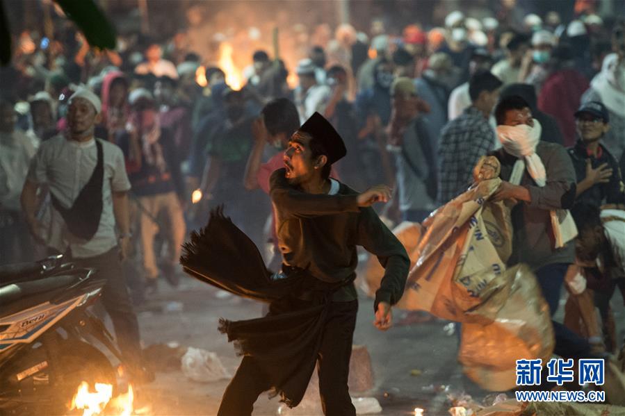 這是5月22日在印度尼西亞首都雅加達(dá)拍攝的騷亂現(xiàn)場(chǎng)。新華社發(fā)(祖卡南 攝)