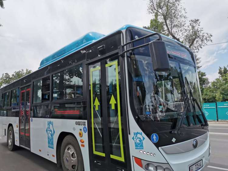 行駛在比什凱克城市干道上的宇通公交車(chē)。(新華社記者 王申 攝)