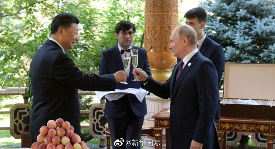 【俄羅斯總統(tǒng)普京當面向習(xí)近平主席祝賀生日】俄羅斯塔斯社、俄新社6月15日上午報道稱,據(jù)俄總統(tǒng)新聞秘書佩斯科夫介紹,俄總統(tǒng)普京今天上午在杜尚別出席亞信第五次峰會前親自前往中國國家主席習(xí)近平下榻賓館,當面向習(xí)主席祝賀66歲生日。普京高度評價習(xí)主席在俄中關(guān)系發(fā)展中發(fā)揮的重要作用,強調(diào)不久前習(xí)主席對俄進行國事訪問取得圓滿成功,相信俄中關(guān)系將繼續(xù)保持良好發(fā)展勢頭。習(xí)主席對普京表示感謝,指出普京在中國很受歡迎。普京總統(tǒng)向習(xí)主席贈送俄羅斯冰淇淋,習(xí)主席回贈中國茶葉。