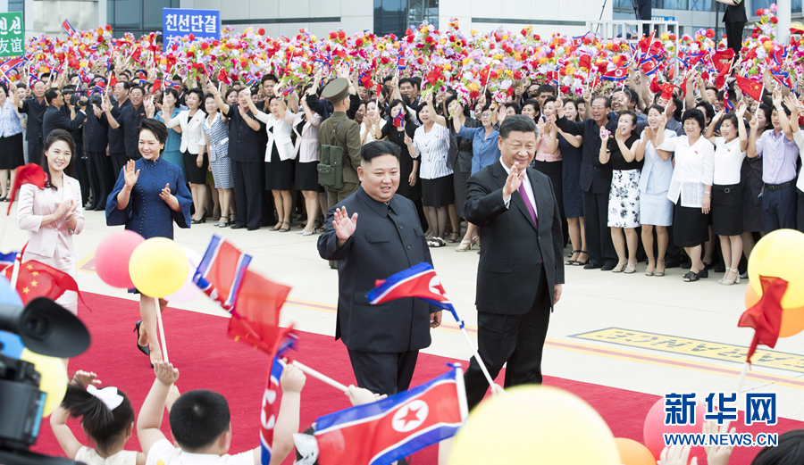 6月21日,中共中央總書記、國家主席習近平結束對朝鮮的國事訪問離開平壤回國。離開前,習近平和夫人彭麗媛出席朝鮮勞動黨委員長、國務委員會委員長金正恩和夫人李雪主在機場舉行的歡送儀式。新華社記者 黃敬文 攝