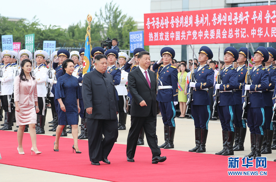 6月21日,中共中央總書記、國(guó)家主席習(xí)近平結(jié)束對(duì)朝鮮的國(guó)事訪問(wèn)離開平壤回國(guó)。離開前,習(xí)近平和夫人彭麗媛出席朝鮮勞動(dòng)黨委員長(zhǎng)、國(guó)務(wù)委員會(huì)委員長(zhǎng)金正恩和夫人李雪主在機(jī)場(chǎng)舉行的歡送儀式。新華社記者 鞠鵬 攝