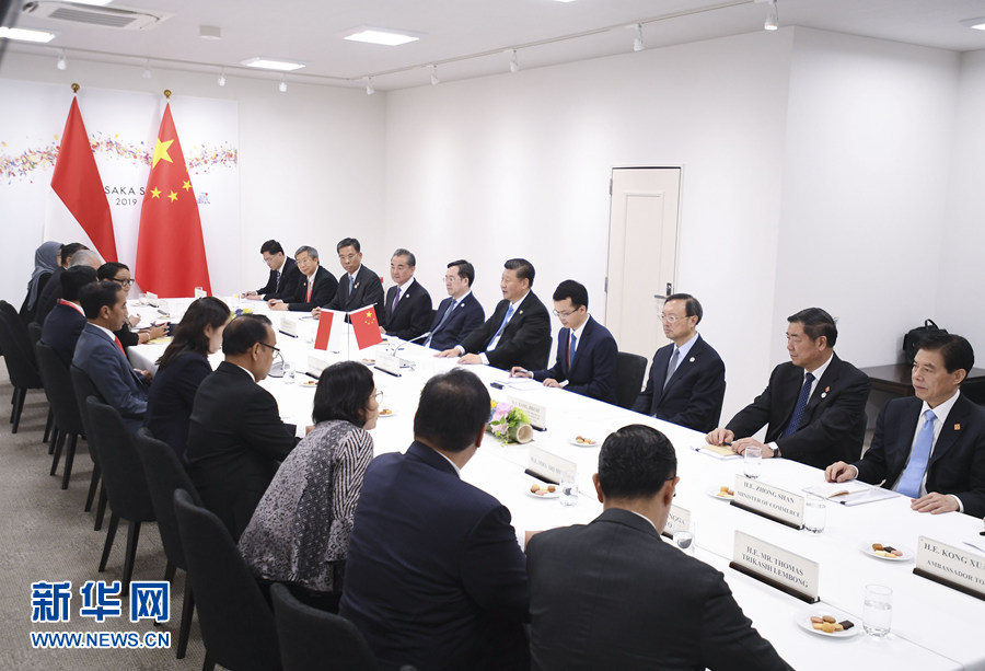 6月28日,國(guó)家主席習(xí)近平在大阪會(huì)見印度尼西亞總統(tǒng)佐科。 新華社記者 燕雁 攝