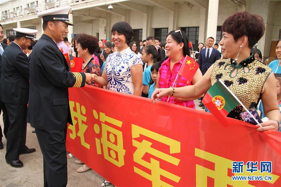 中國駐葡萄牙大使蔡潤、使館外交官以及中資機(jī)構(gòu)、華僑華人代表近200人到碼頭熱烈迎接,并參加了登艦參觀活動。