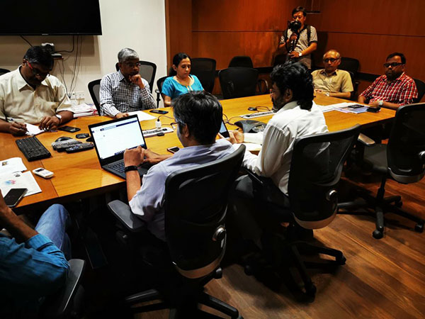 《印度教徒報(bào)》各個(gè)版面負(fù)責(zé)人于晚間召開碰頭會(huì),商量確定內(nèi)容和版面設(shè)計(jì)。新華社記者趙博攝