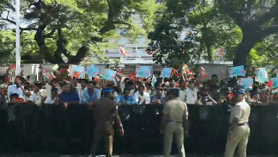 習主席的車隊駛離機場前往市區(qū)沿途,眾多當地學生和群眾簇擁在街道兩旁,揮舞中印兩國國旗,手舉習主席和莫迪總理照片,歡呼“中印友好”,表達對習主席的熱烈歡迎。