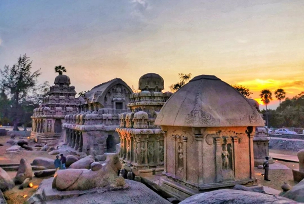 馬哈巴利普拉姆古寺廟建于公元7至8世紀,由阿周那石雕、五戰(zhàn)車神廟、海岸神廟等古跡組成。