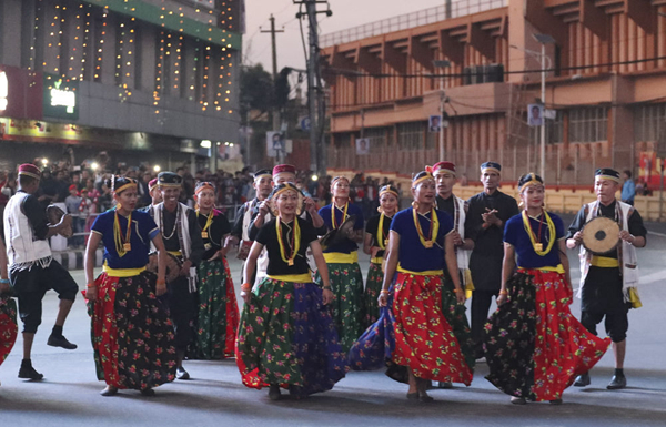 10月12日,尼泊爾民眾載歌載舞熱烈歡迎中國國家主席習近平來訪。新華社記者丁林攝