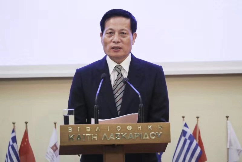 中國駐希臘大使章啟月在研討會(huì)上致辭。