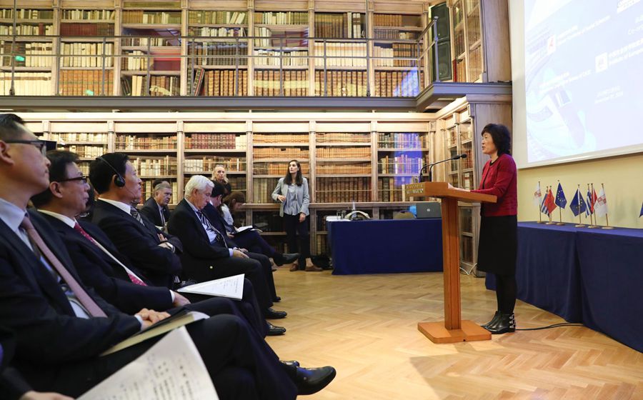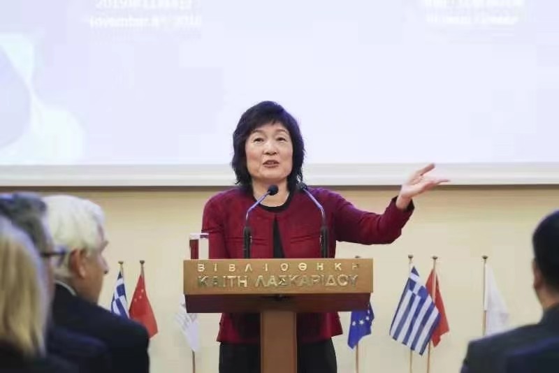 中國駐希臘大使章啟月在研討會(huì)上致辭。中國日報(bào)記者 匡林華 攝