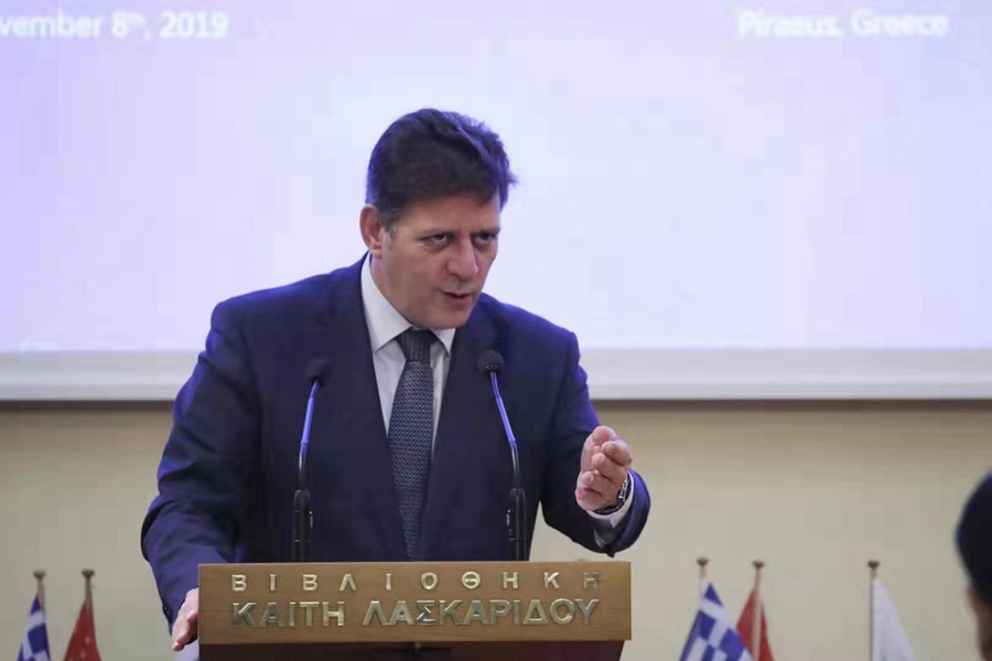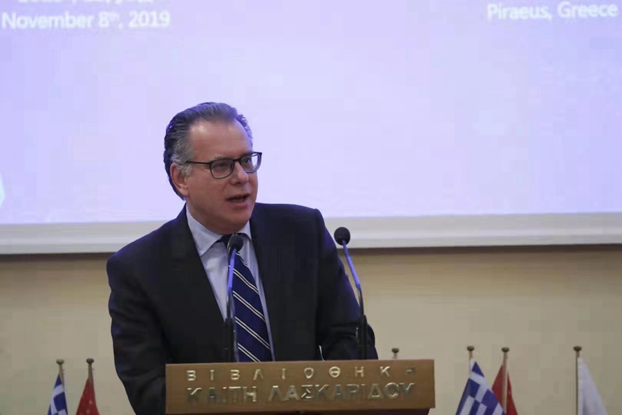希臘外交部副部長米爾提阿迪斯·瓦維特斯奧提斯在研討會(huì)上致辭。中國日報(bào)記者 匡林華 攝