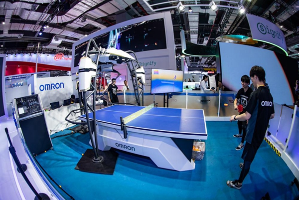 在裝備展區(qū),乒乓球機(jī)器人較受關(guān)注,不僅互動(dòng)性強(qiáng),而且也昭示著人工智能的發(fā)展。新華網(wǎng)吳愷 攝