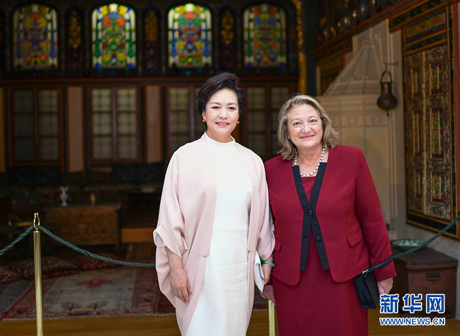 當(dāng)?shù)貢r(shí)間11月11日上午,國(guó)家主席習(xí)近平夫人彭麗媛在希臘總統(tǒng)夫人弗拉西婭陪同下參觀位于雅典市中心的貝納基博物館。 新華社記者 丁林 攝