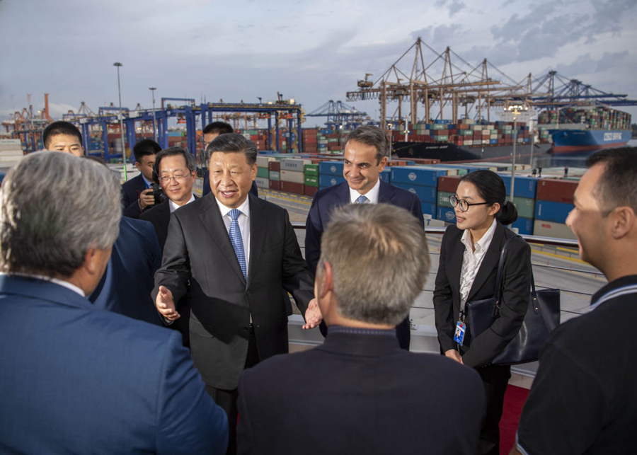 新華社雅典11月12日電當(dāng)?shù)貢r(shí)間11月11日,習(xí)近平主席繼續(xù)在希臘的訪問(wèn)行程——上午,分別同希臘總統(tǒng)帕夫洛普洛斯、總理米佐塔基斯舉行會(huì)談;下午,不辭辛勞來(lái)到雅典西南約10公里處的中遠(yuǎn)海運(yùn)比雷埃夫斯港項(xiàng)目參觀?! ?/p>