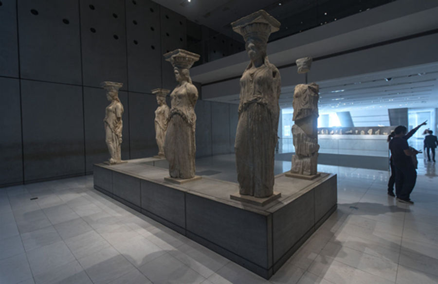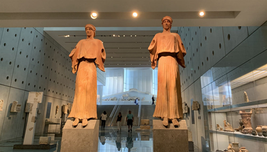 地中海溫暖的陽(yáng)光透過(guò)雅典衛(wèi)城博物館玻璃幕墻灑入展廳,一座座古希臘神話人物和建筑雕像栩栩如生,展示著美和力量,訴說(shuō)著希臘古典藝術(shù)的燦爛輝煌,令人仿佛徜徉于歷史長(zhǎng)河里,沉醉在文明畫(huà)卷中。
