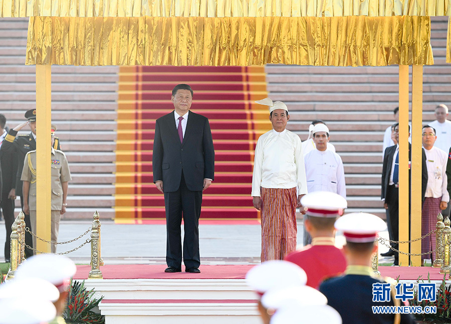 當(dāng)?shù)貢r(shí)間1月17日下午,國家主席習(xí)近平在內(nèi)比都總統(tǒng)府出席緬甸總統(tǒng)溫敏舉行的隆重歡迎儀式。 新華社記者 申宏 攝