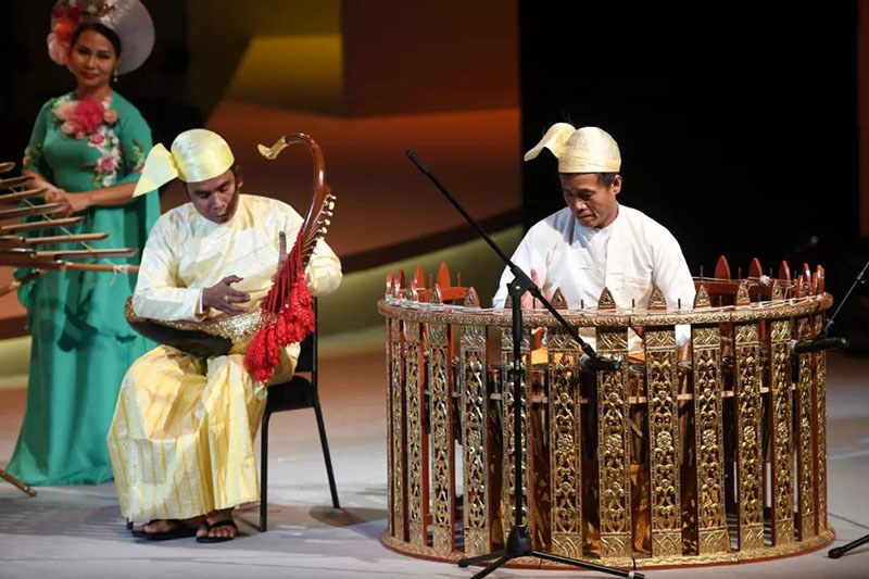 ▲2017年9月23日,第十五屆亞洲藝術(shù)節(jié)在浙江寧波開幕。圖為緬甸民樂演奏家在演奏樂曲《米亞曼吉利》。