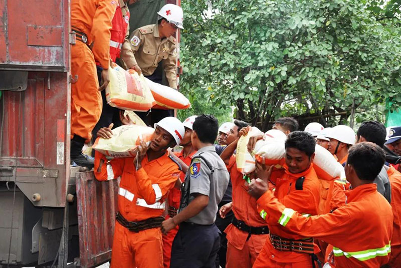 ▲2015年8月7日,云南省政府向緬甸災(zāi)民捐贈的救災(zāi)物資運抵曼德勒。持續(xù)降雨導(dǎo)致緬甸14個省邦中的12個省邦遭受不同程度水災(zāi)。