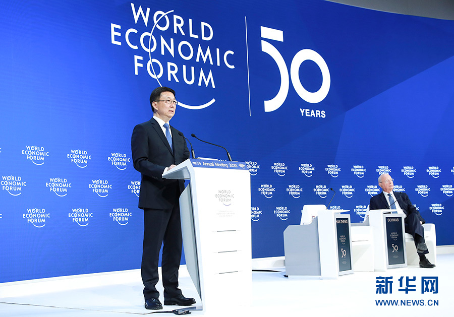 當(dāng)?shù)貢r(shí)間1月21日,中共中央政治局常委、國(guó)務(wù)院副總理韓正出席達(dá)沃斯世界經(jīng)濟(jì)論壇2020年年會(huì),發(fā)表題為“共建開(kāi)放型世界經(jīng)濟(jì) 推動(dòng)全球可持續(xù)發(fā)展”的致辭。 新華社記者 龐興雷 攝