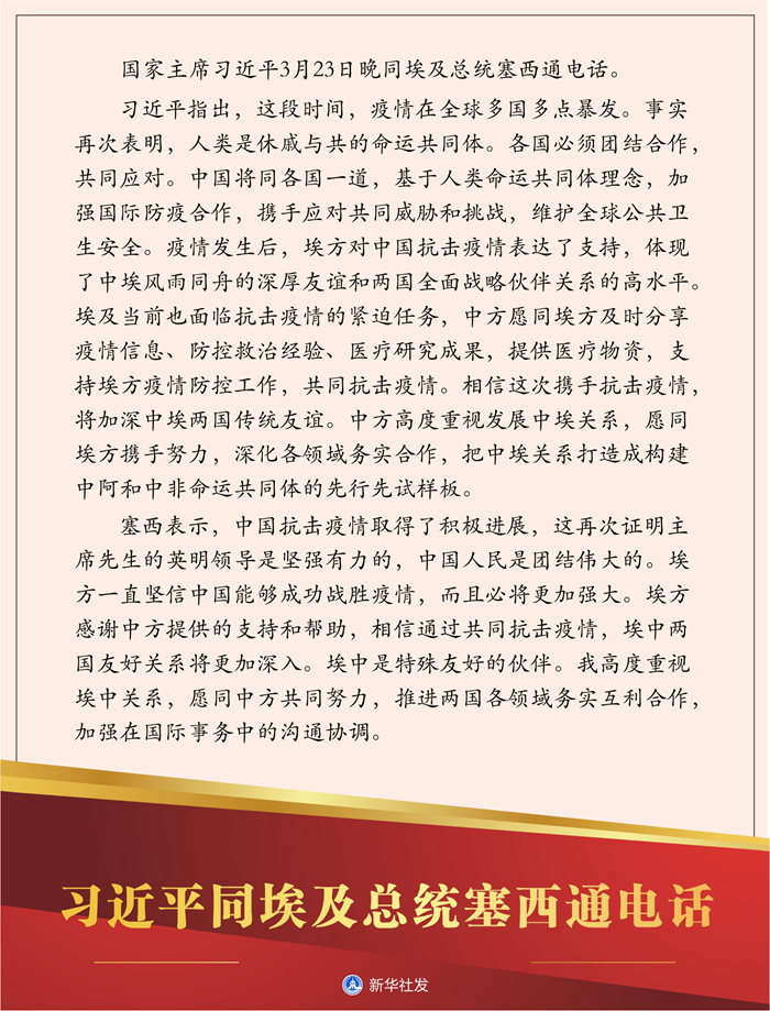 圖表:習近平同埃及總統塞西通電話 新華社發(fā)