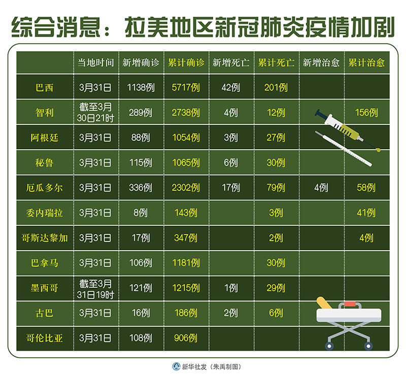 新華社墨西哥城3月31日電 綜合新華社駐拉美地區(qū)記者報道:拉美地區(qū)多國新冠肺炎疫情持續(xù)加劇,各國繼續(xù)加強防控。