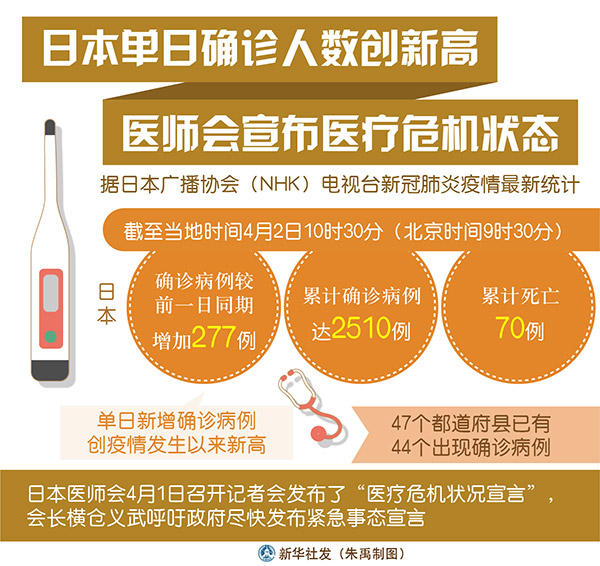 日本醫(yī)師會1日召開記者會指出日本一些地區(qū)病床不足,并發(fā)布了“醫(yī)療危機(jī)狀況宣言”。醫(yī)師會會長橫倉義武呼吁政府盡快發(fā)布緊急事態(tài)宣言。他說現(xiàn)在采取的對策要在兩周后才看到效果,等疫情暴發(fā)后就太晚了。