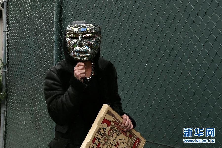 4月10日,一名青年男子用一個面罩遮臉走在美國洛杉磯的街道上。 為減緩新冠病毒的傳播,洛杉磯市長7日下令,民眾在公共營業(yè)場所要戴口罩或用織物遮擋住臉,這一行政令于2020年4月10日生效。 新華社發(fā)