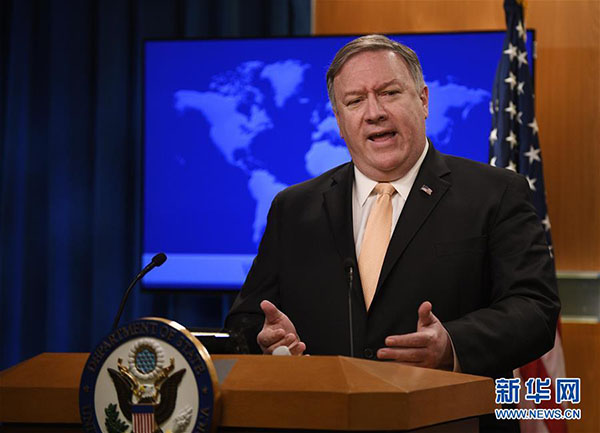 資料圖片:美國國務(wù)卿蓬佩奧。新華社記者 劉杰 攝