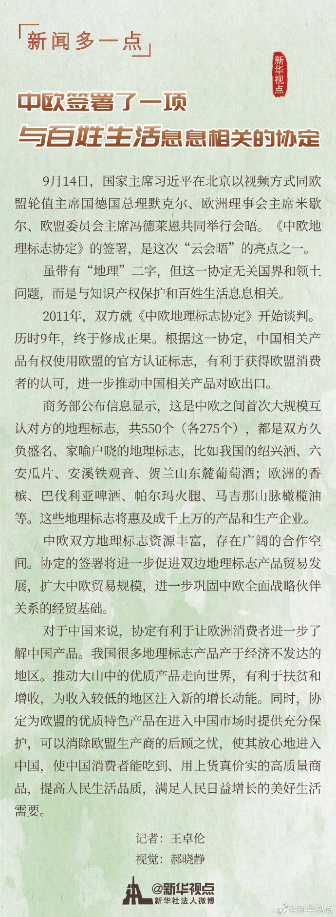 中歐簽署了一項(xiàng)與百姓生活息息相關(guān)的協(xié)定-新華網(wǎng)