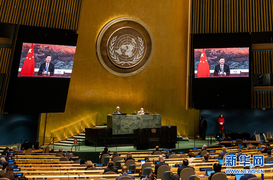 10月1日,國家主席習(xí)近平在聯(lián)合國大會紀(jì)念北京世界婦女大會25周年高級別會議上通過視頻發(fā)表重要講話。 新華社發(fā)