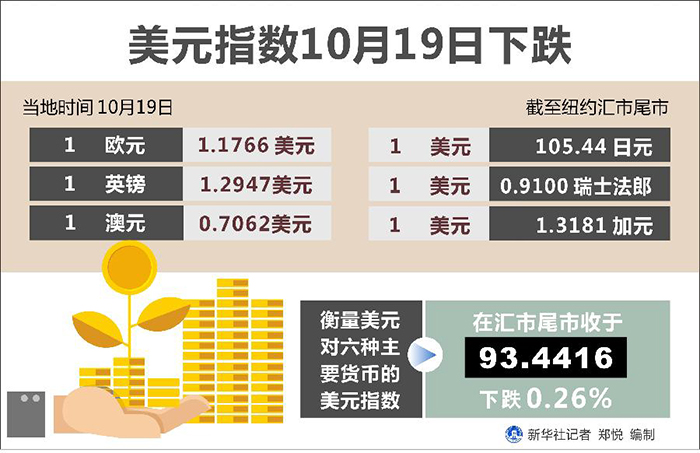 新華社紐約10月19日電(記者劉亞南)美元指數(shù)19日下跌。