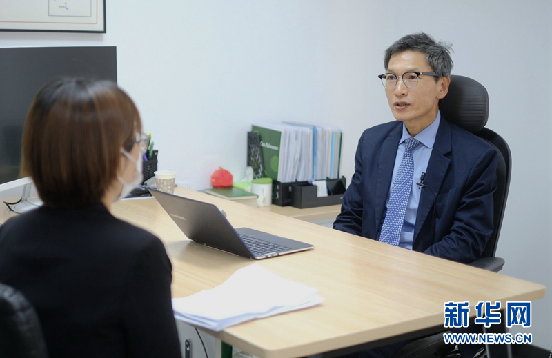 近日,韓國綠色食品企業(yè)圃美多中國CEO杜鎮(zhèn)雨接受新華網(wǎng)記者專訪。劉鐘靈 攝