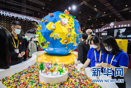 樂(lè)高玩具拼成的“地球”在樂(lè)高展區(qū)特別引人注目。新華網(wǎng) 發(fā)