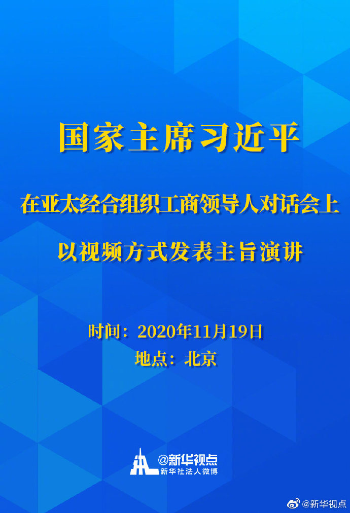 國(guó)家主席習(xí)近平11月19日在北京以視頻方式在亞太經(jīng)合組織工商領(lǐng)導(dǎo)人對(duì)話會(huì)上發(fā)表主旨演講