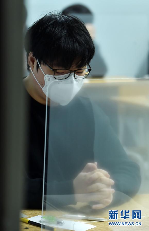 12月3日,在韓國(guó)京畿道城南市,一名考生在考試中。新華社發(fā)(李相浩 攝)