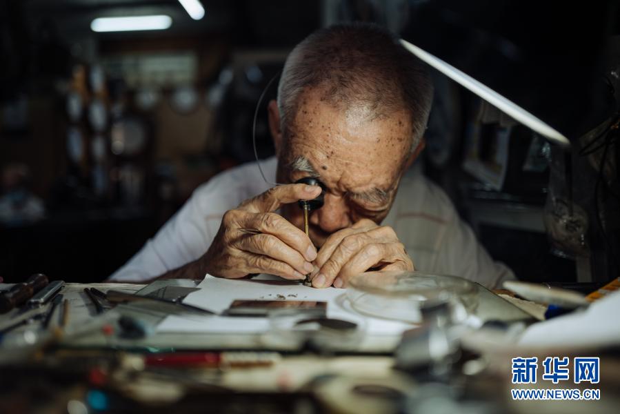12月5日,在馬來西亞雪蘭莪州巴生的郁昌表行,韋華在維修手表。新華社記者 朱煒 攝