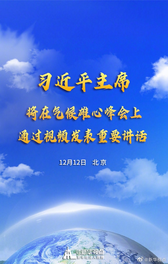 新華社北京12月11日電 外交部發(fā)言人華春瑩11日宣布:應(yīng)聯(lián)合國秘書長古特雷斯、法國總統(tǒng)馬克龍、英國首相約翰遜、智利總統(tǒng)皮涅拉、意大利總理孔特聯(lián)名邀請,國家主席習(xí)近平將于12月12日出席氣候雄心峰會并發(fā)表重要講話。會議將以視頻方式舉行。