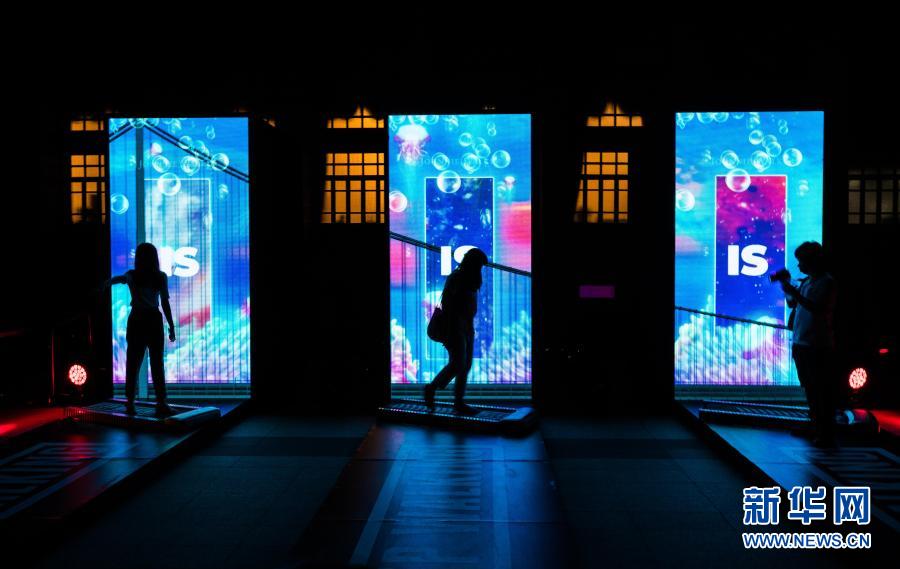 12月15日,游客在泰國(guó)曼谷參觀“覺醒曼谷”主題燈光藝術(shù)節(jié)上的一件互動(dòng)燈光藝術(shù)作品。