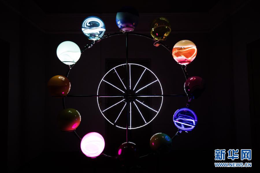 這是12月15日在泰國曼谷“覺醒曼谷”主題燈光藝術節(jié)上拍攝的一件燈光藝術作品。新華社記者 張可任 攝